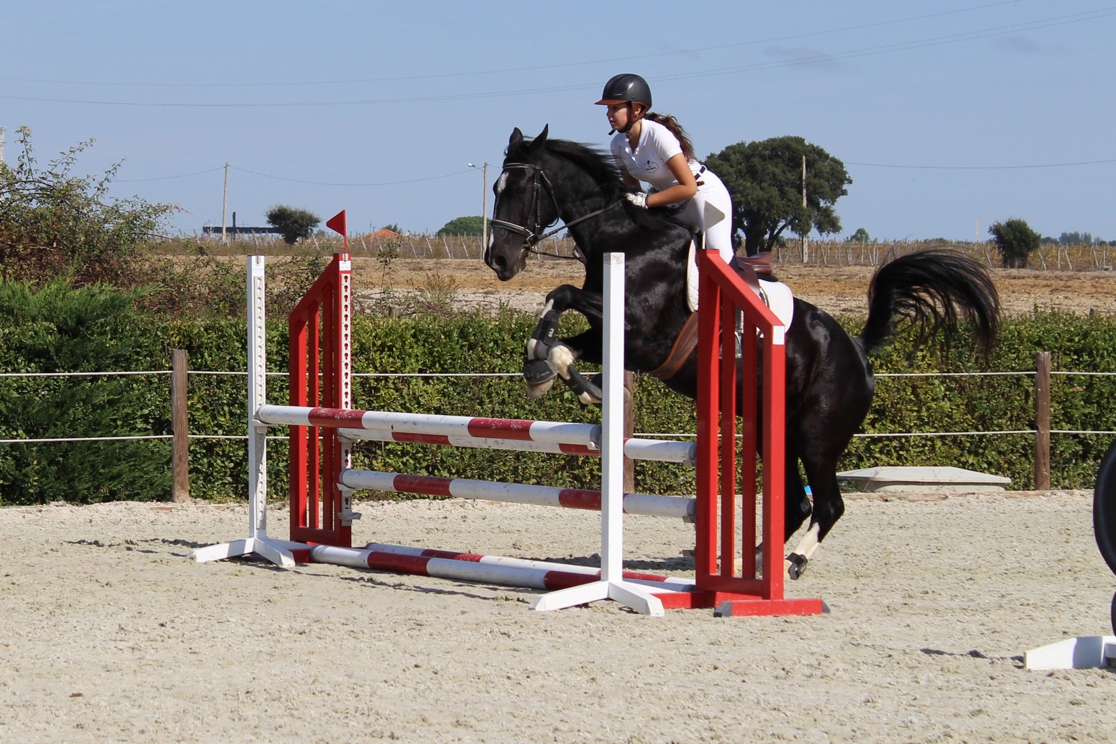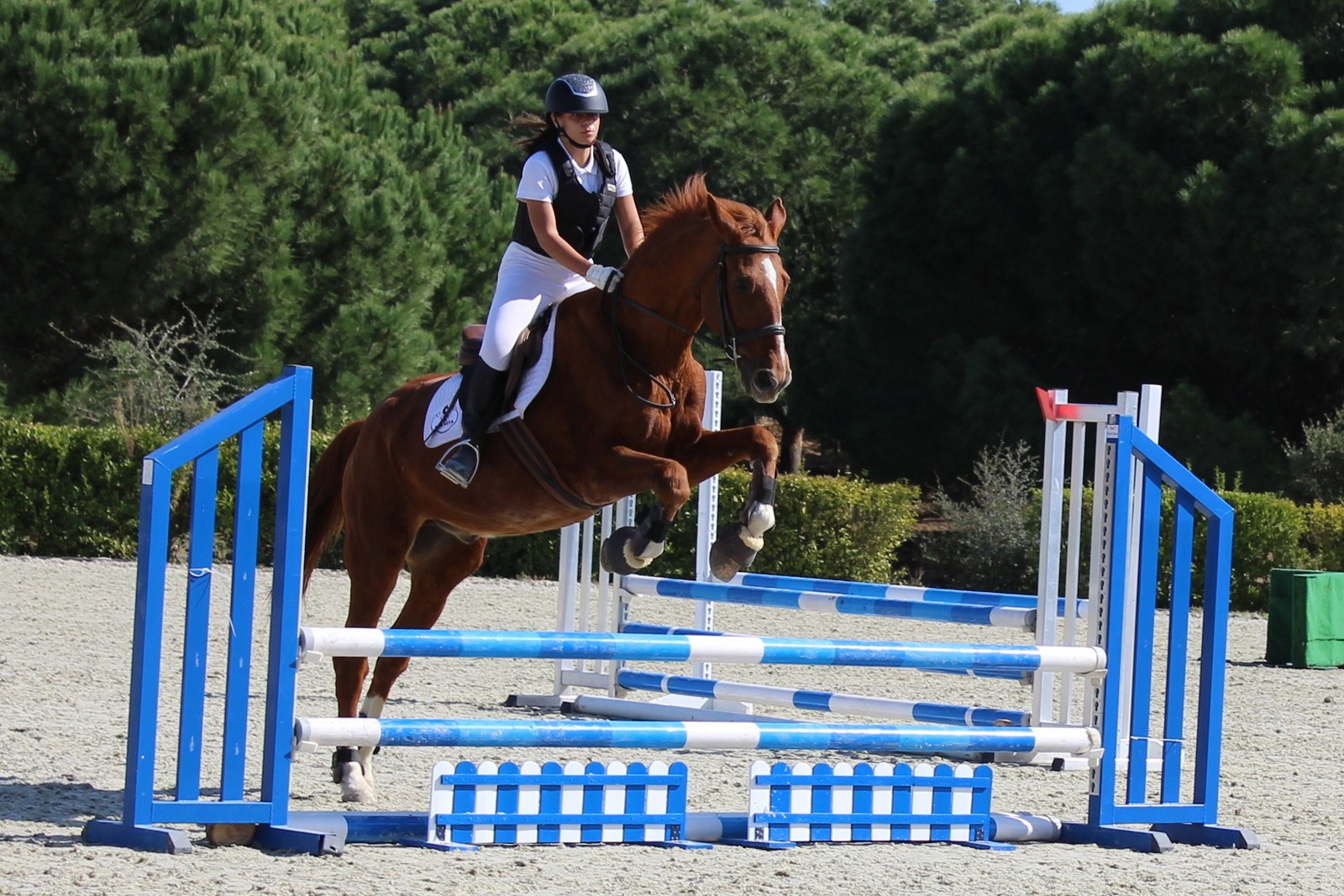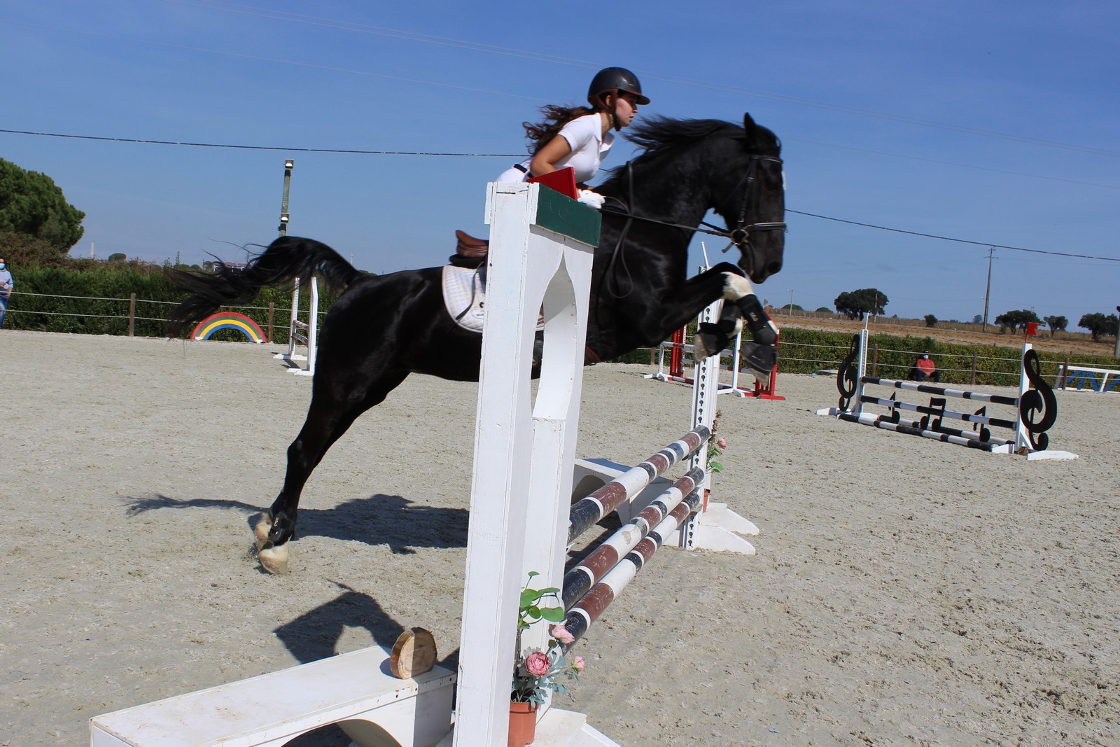 Aulas de saltos de obstáculos para iniciados e avançados. Preparação para competição.